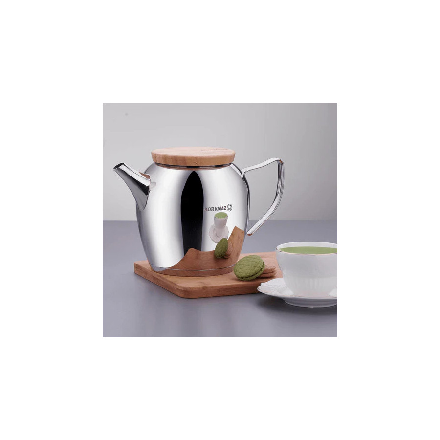 Τσαγιέρα, χωρητικότητας 1,1 λίτρων από ανοξείδωτο ατσάλι 18/10. Το καπάκι της τσαγιέρας είναι από μπαμπούΗ ενθυλακωμένη βάση κατανέμει ομοιόμορφα τη θερμότητα σε ολόκληρη την επιφάνεια. Κατάλληλο για πλυντήριο πιάτων.