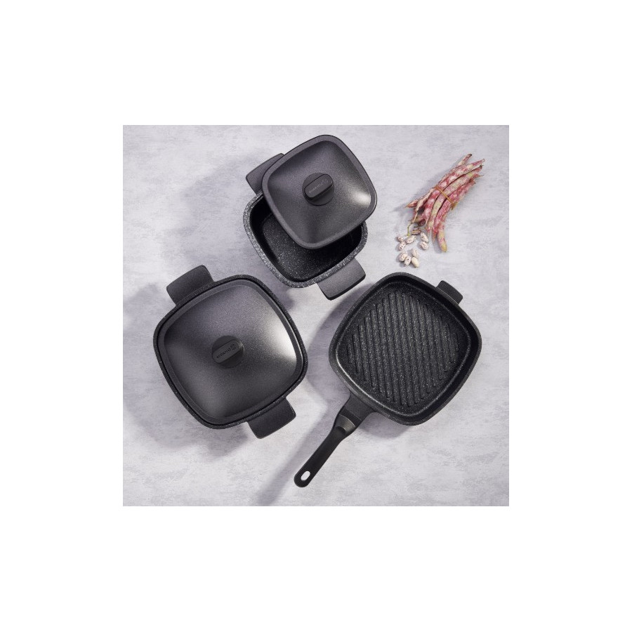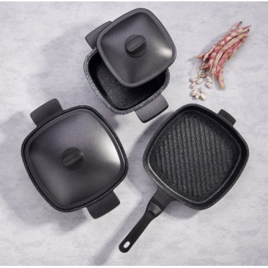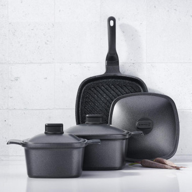 Το αντικολλητικό στρώμα "Volkanit Coating", που εφαρμόζεται μέσω της γερμανικής τεχνολογίας Weilburg, προσφέρει εξαιρετικές αντικολλητικές ιδιότητες και έχει πολύ υψηλή αντοχή στις γρατσουνιές. Αποτελείται από 5 στρώσεις που αντέχουν έως και 70.000 πλύσεις. Το αντικολλητικό στρώμα δεν περιέχει PFOA, κάδμιο ή μόλυβδο και σας βοηθά να προετοιμάσετε νόστιμα γεύματα χρησιμοποιώντας λιγότερο λάδι από άλλους τύπους μαγειρικών σκευών. Παράγεται από ανακυκλωμένα και ανακυκλώσιμα υλικά, χρησιμοποιώντας φιλική προς το περιβάλλον τεχνολογία, με αντικολλητική επίστρωση PTFE στο εσωτερικό, ανθεκτική στις γρατσουνιές και εξωτερικό στρώμα κατασκευασμένο από πυρίτιο ανθεκτικό στις υψηλές θερμοκρασίες. Εξοικονόμηση χρόνου και ενέργειας χάρη στην ειδική βάση Solar Base που παρέχει υψηλή μεταφορά θερμότητας σε όλους τους τύπους των εστιών. Το προϊόν μπορεί να καθαριστεί στο πλυντήριο πιάτων.